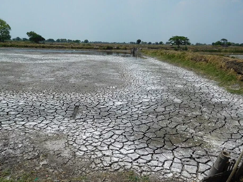Pengeringan dasar kolam tanah dilakukan untuk memutus siklus hidup hama dan penyakit yang mungkin ada pada periode budidaya sebelumnya.